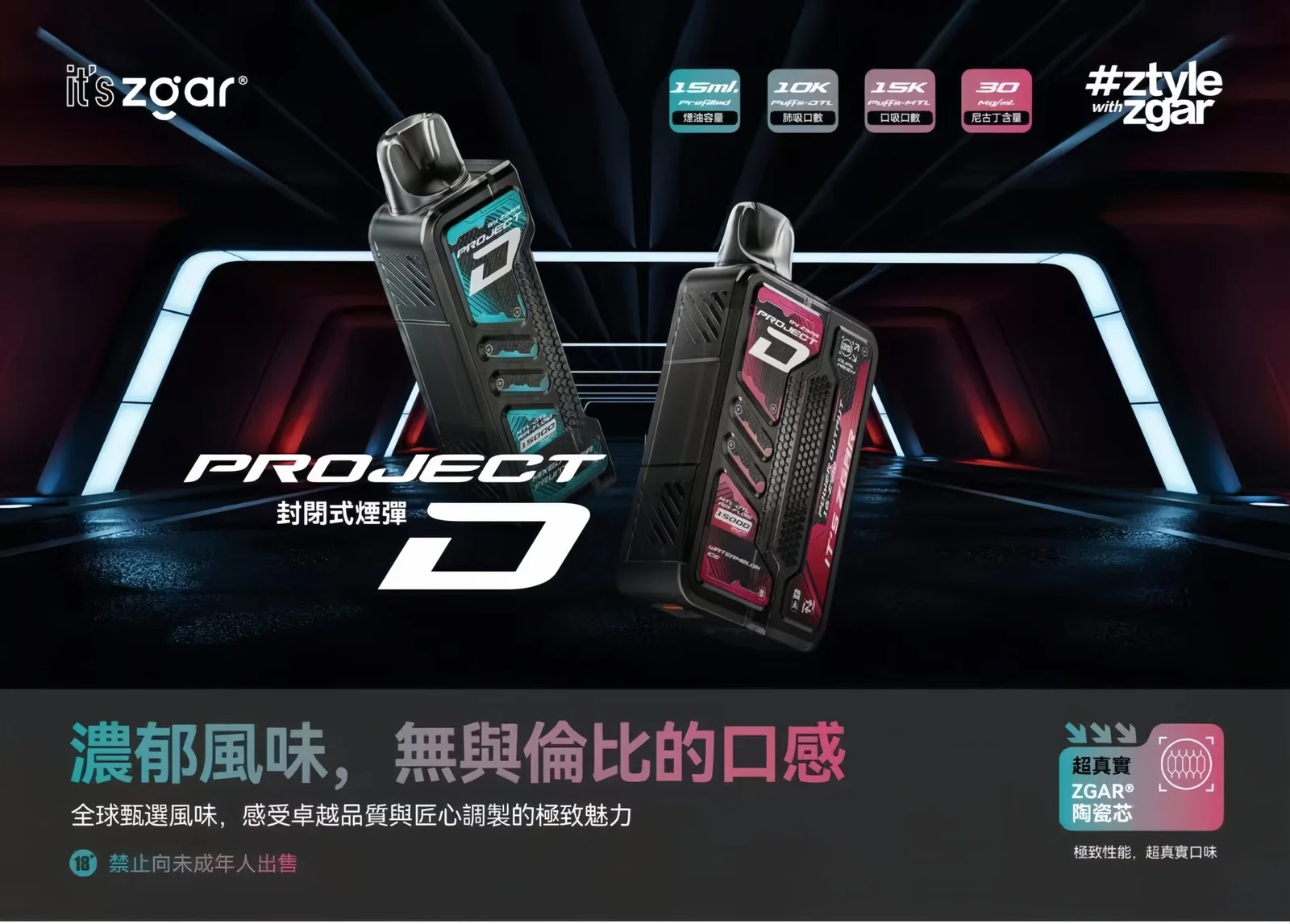 ZGAR電子煙磁吸換彈強勢登場!ZGAR15ml煙油,持久續航高達約 15000 口,冰熊卡帶專屬主機搭載雙網狀加熱芯 + 優質陶瓷霧化芯,還原每一口的真實風味。ZGAR PROJECT-D主機搭配智慧 LED 螢幕,電量、功率、口數一目了然。搭配700mAh電池,外出無憂。無論新手還是老玩家,都能享受細膩順滑、隨心可調的極致體驗!